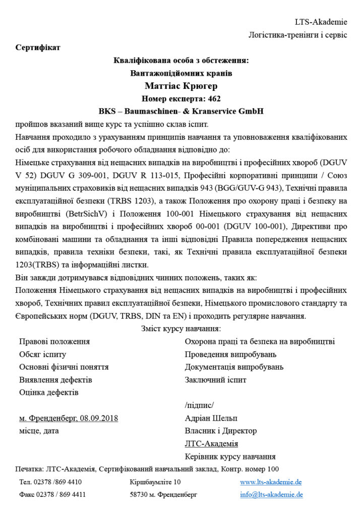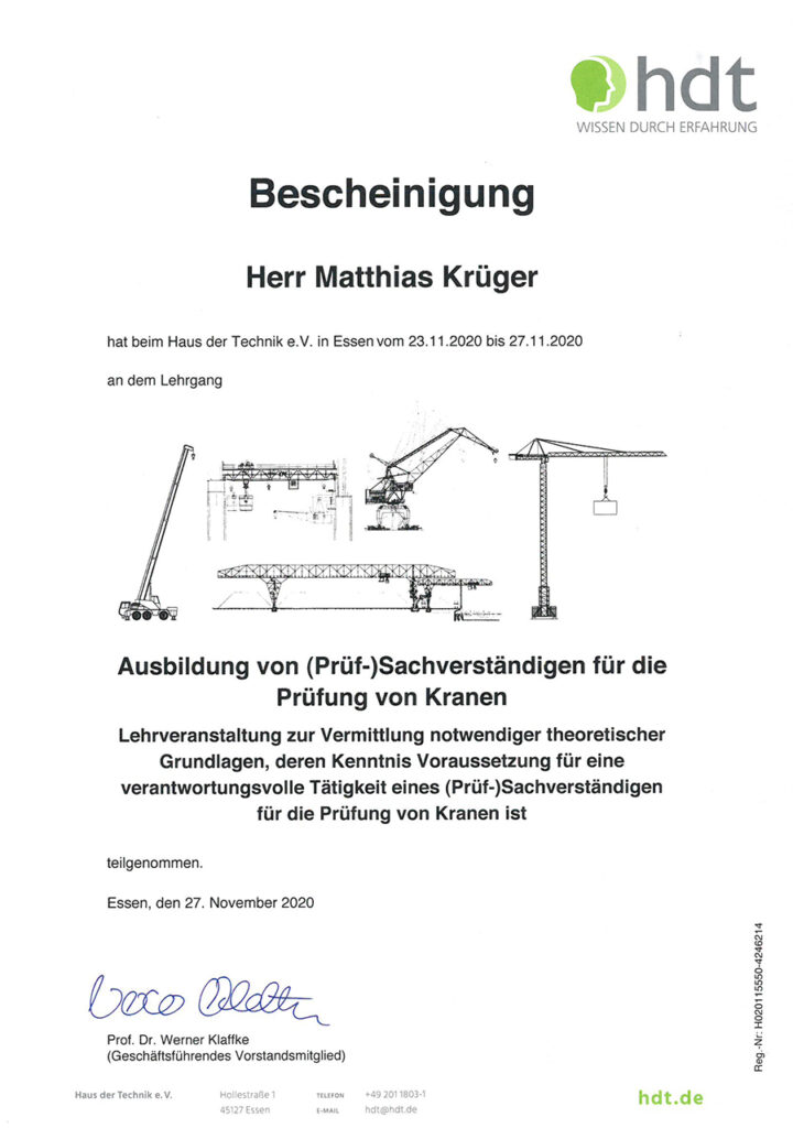 Dipl.- Ing. Matthias Krüger, ist ein zertifizierter Sachverständiger für Krananlagen und bringt langjährige Erfahrung und umfassendes Fachwissen in der Prüfung und Begutachtung von Krananlagen mit. Durch seine Expertise verstärkt er die SKET Spezialkran GmbH / OOD, so dass wir auch weiterhin höchste Qualität- und Sicherheitsstandards erfüllen. Herr M. Krüger steht Ihnen als kompetenter Ansprechpartner für alle Fragen rund um die Prüfung, Wartung und Sicherheit Ihrer SKET – Kräne zur Verfügung.